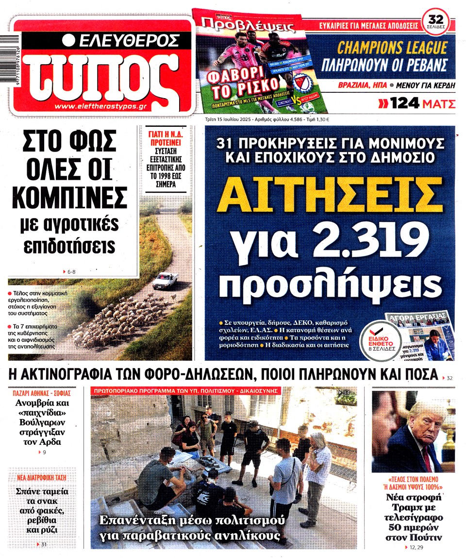 ΕΛΕΥΘΕΡΟΣ ΤΥΠΟΣ - 15 Ιουλίου 2025