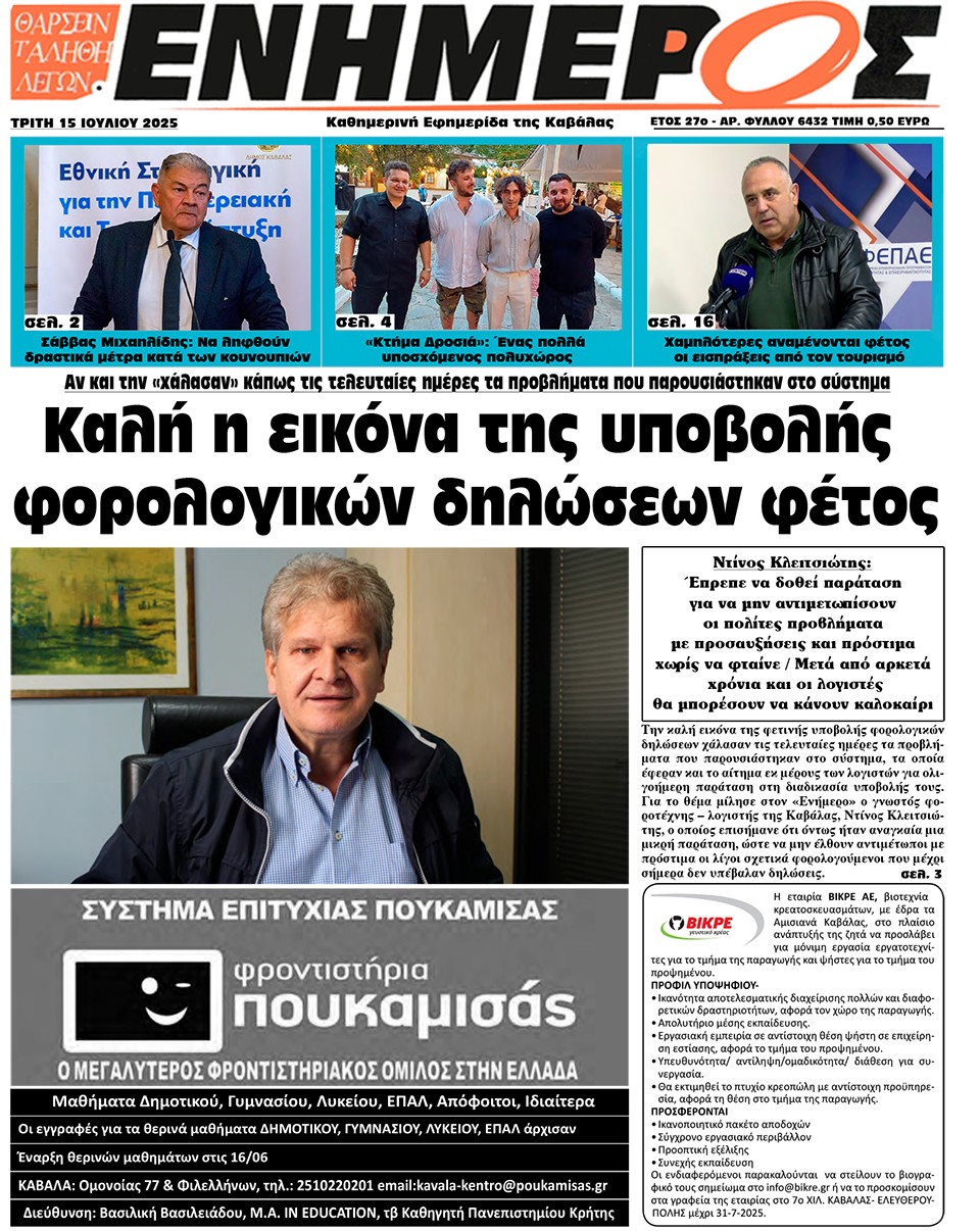 ΕΝΗΜΕΡΟΣ - 15 Ιουλίου 2025