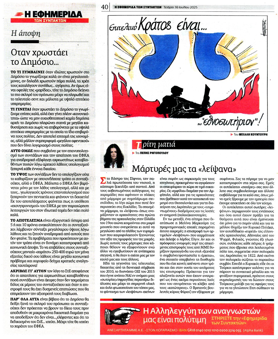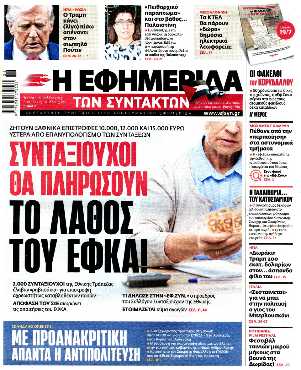 Η ΕΦΗΜΕΡΙΔΑ ΤΩΝ ΣΥΝΤΑΚΤΩΝ - 16 Ιουλίου 2025