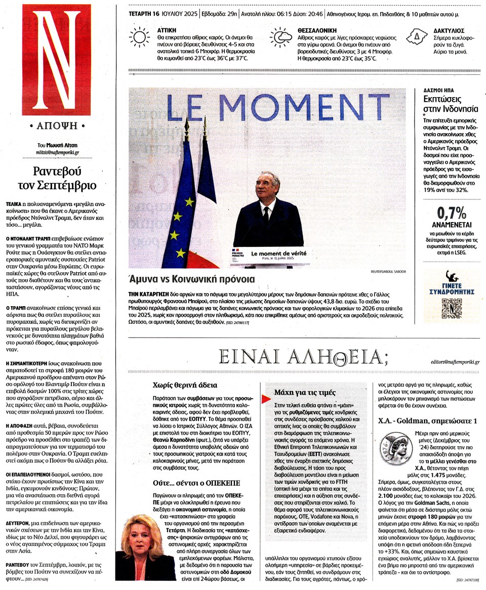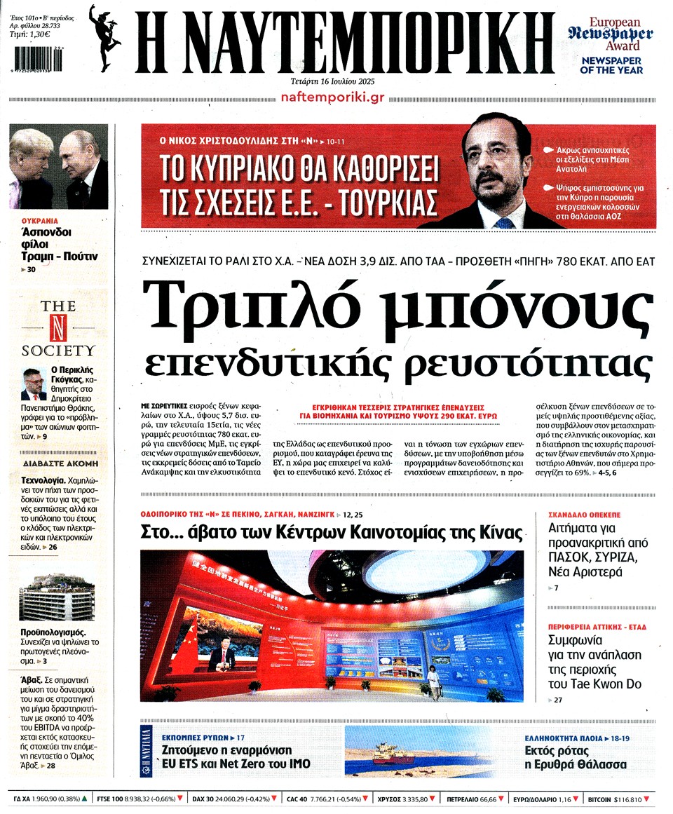 ΝΑΥΤΕΜΠΟΡΙΚΗ - 16 Ιουλίου 2025