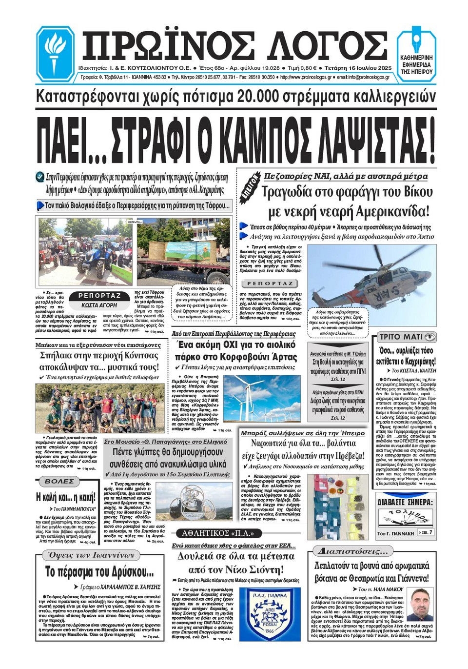 ΠΡΩΙΝΟΣ ΛΟΓΟΣ - 16 Ιουλίου 2025