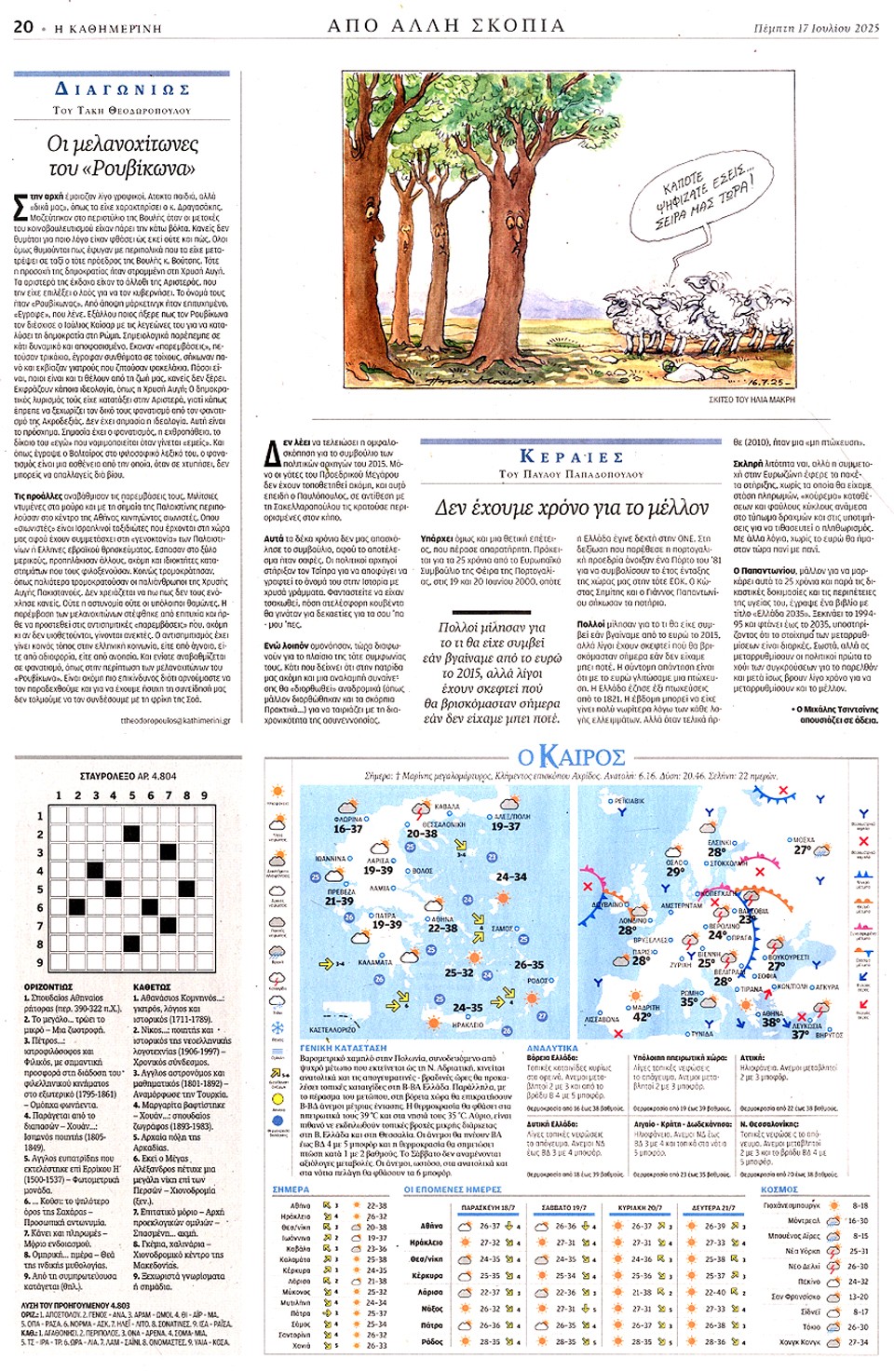 ΚΑΘΗΜΕΡΙΝΗ - 17 Ιουλίου 2025