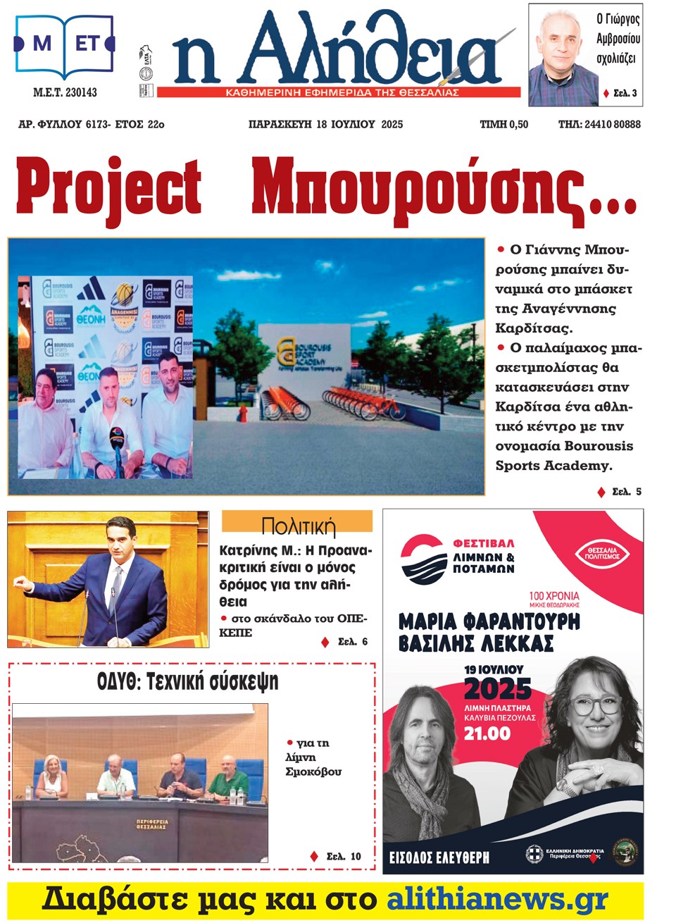 Η ΑΛΗΘΕΙΑ - 18 Ιουλίου 2025