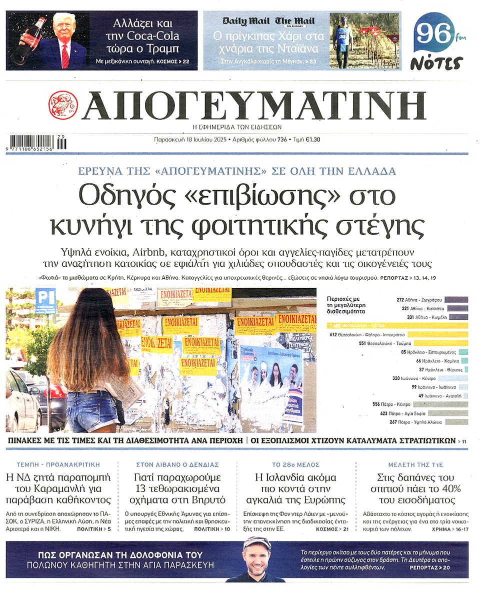 ΑΠΟΓΕΥΜΑΤΙΝΗ - 18 Ιουλίου 2025