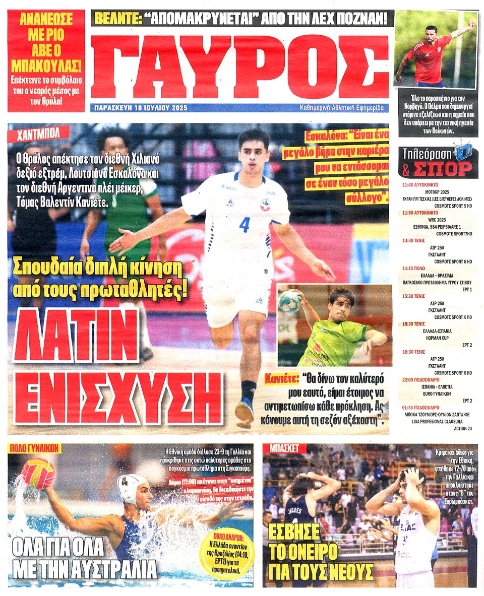 ΠΡΩΤΑΘΛΗΤΗΣ - 18 Ιουλίου 2025