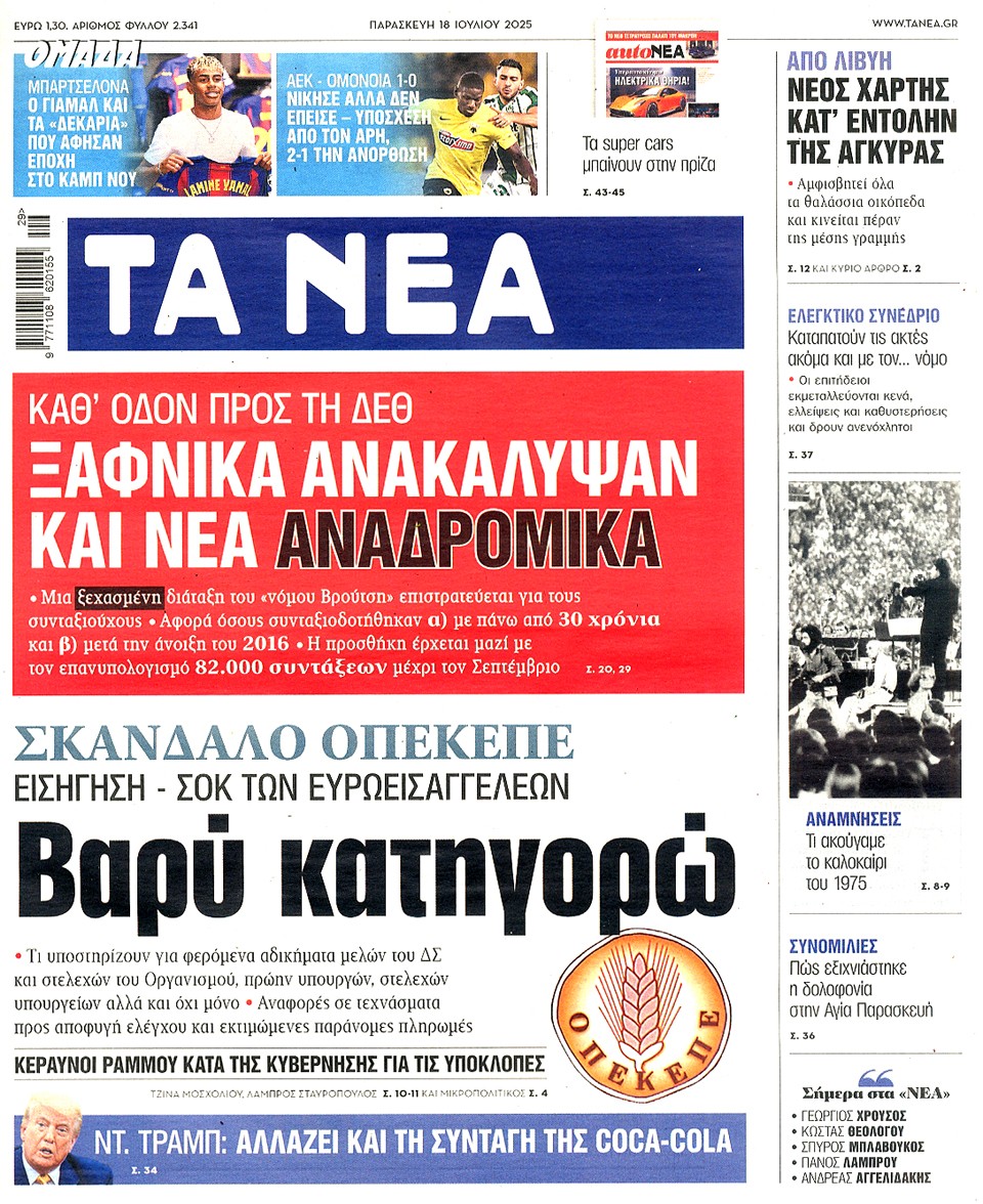 ΤΑ ΝΕΑ - 18 Ιουλίου 2025