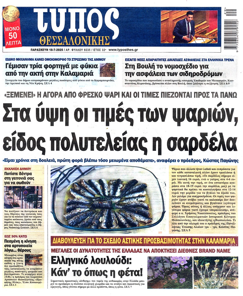 ΤΥΠΟΣ ΘΕΣΣΑΛΟΝΙΚΗΣ - 18 Ιουλίου 2025