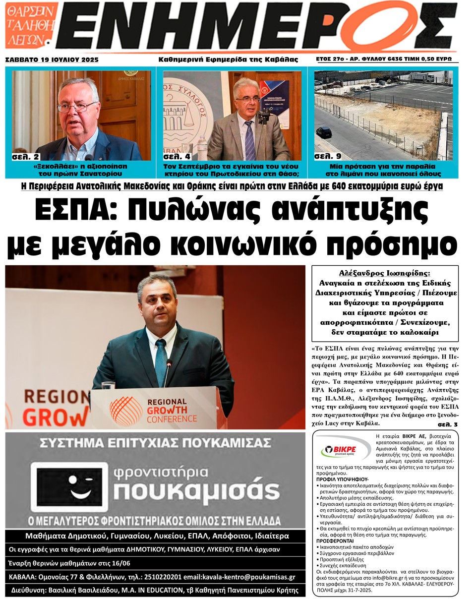 ΕΝΗΜΕΡΟΣ - 19 Ιουλίου 2025