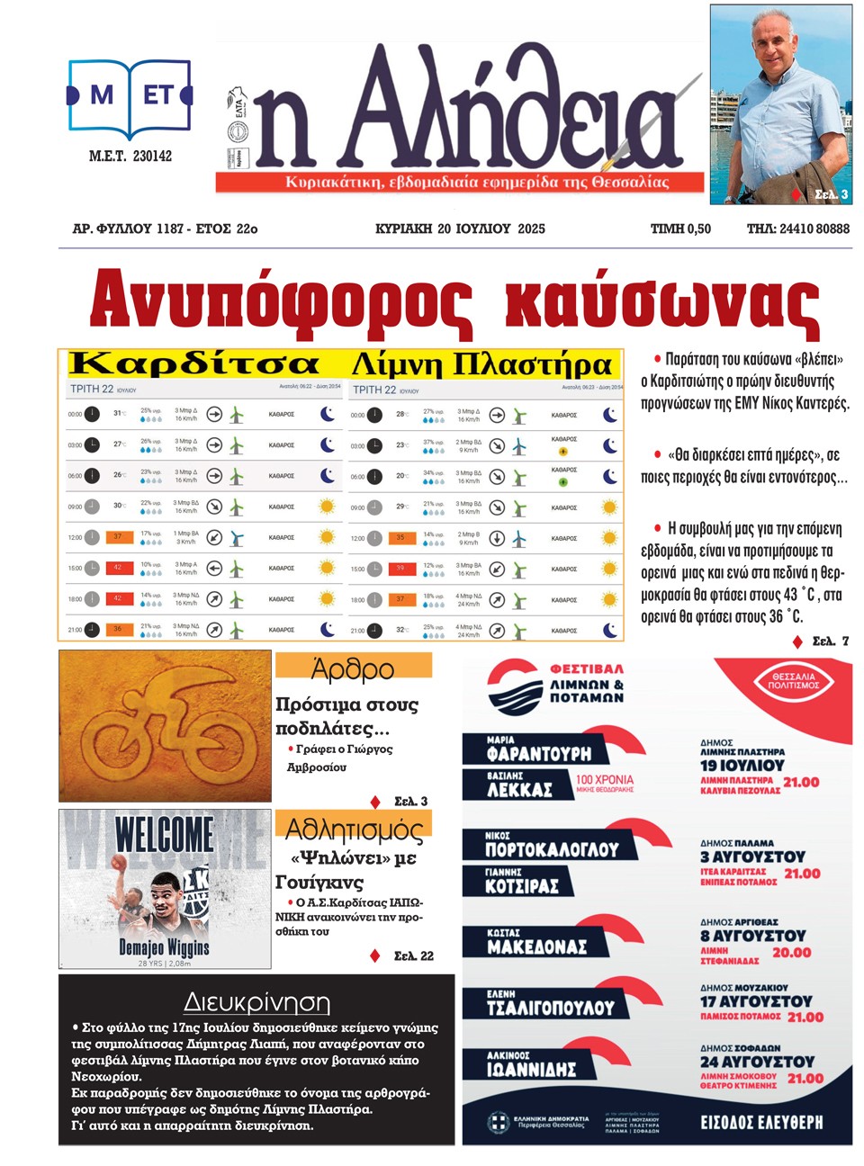 Η ΑΛΗΘΕΙΑ - 19 Ιουλίου 2025