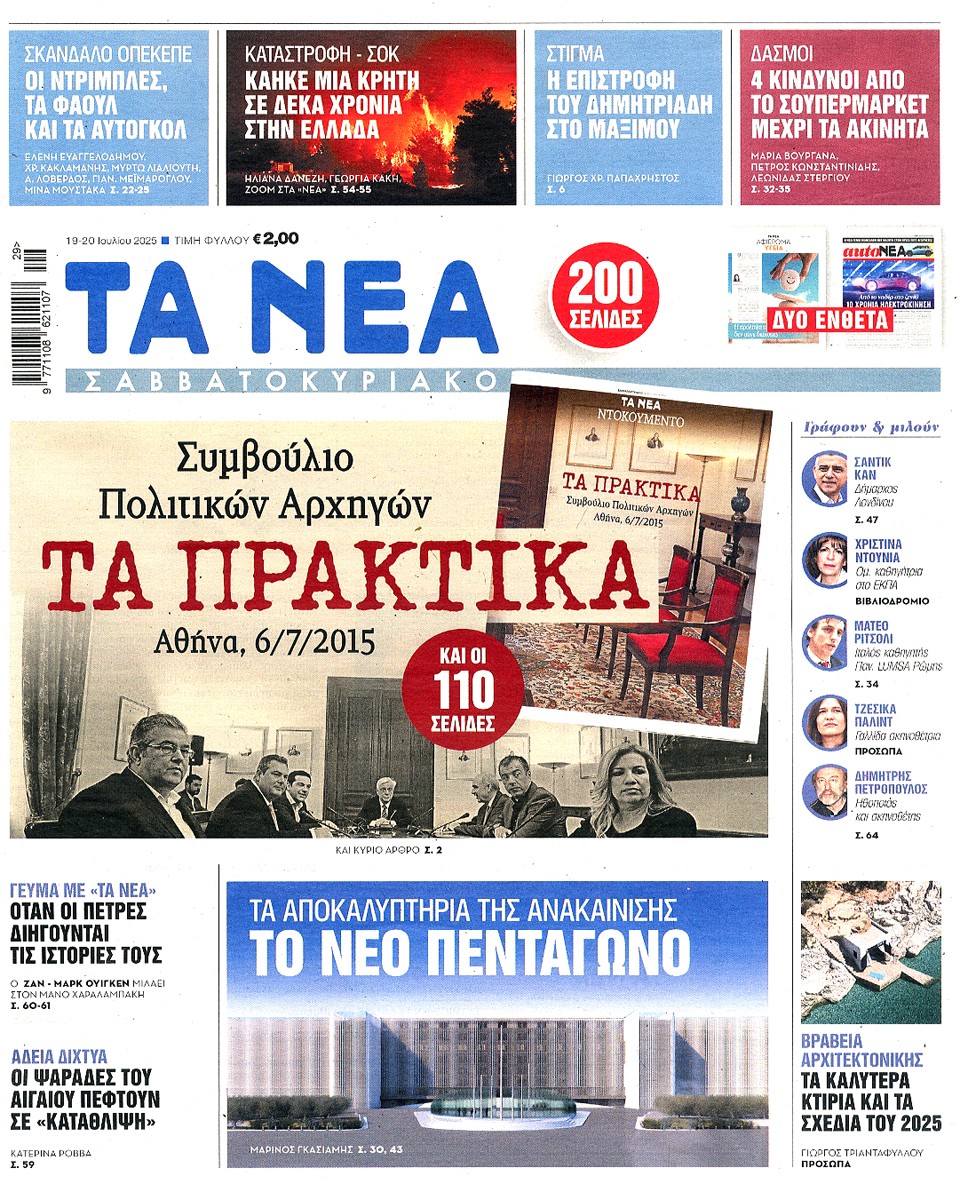ΤΑ ΝΕΑ - 19 Ιουλίου 2025