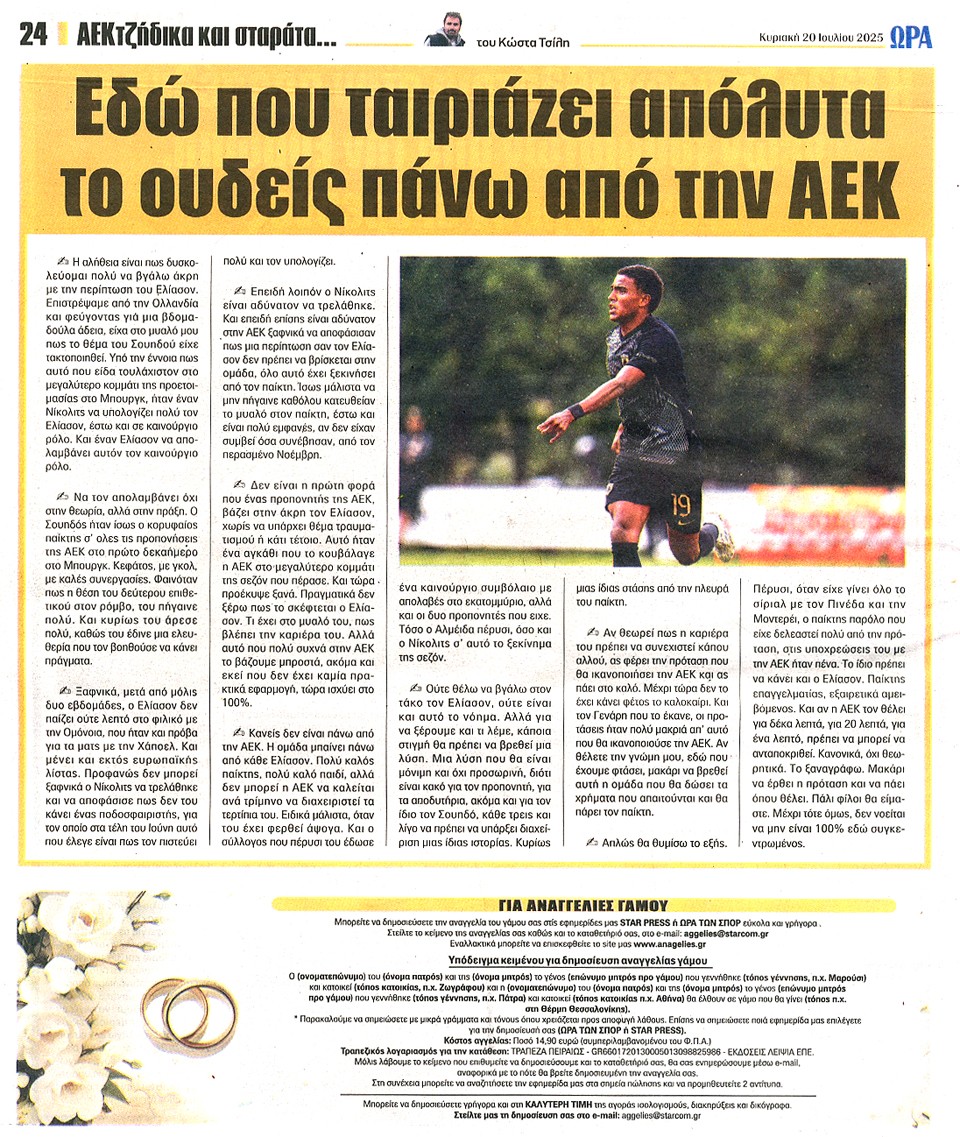 ΑΘΛΗΤΙΚΗ ΩΡΑ ΤΩΝ ΣΠΟΡ - 20 Ιουλίου 2025