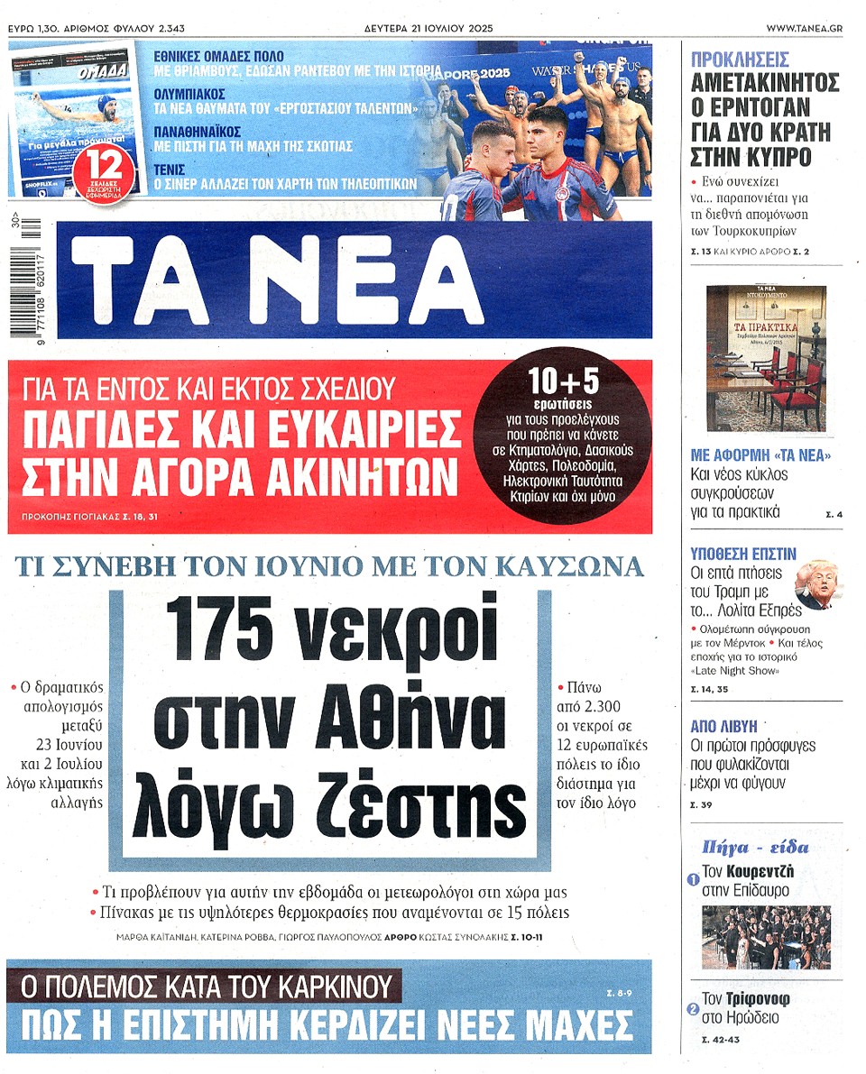 ΤΑ ΝΕΑ - 21 Ιουλίου 2025