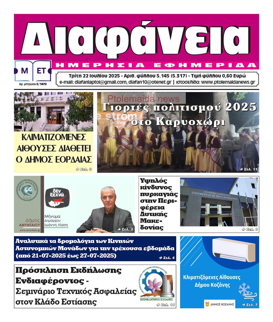 ΔΙΑΦΑΝΕΙΑ - 22 Ιουλίου 2025
