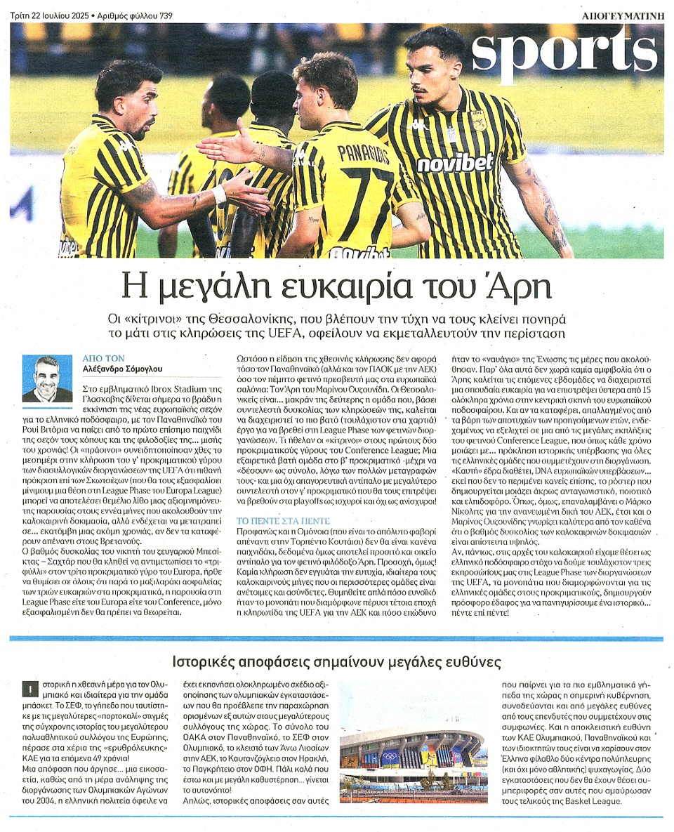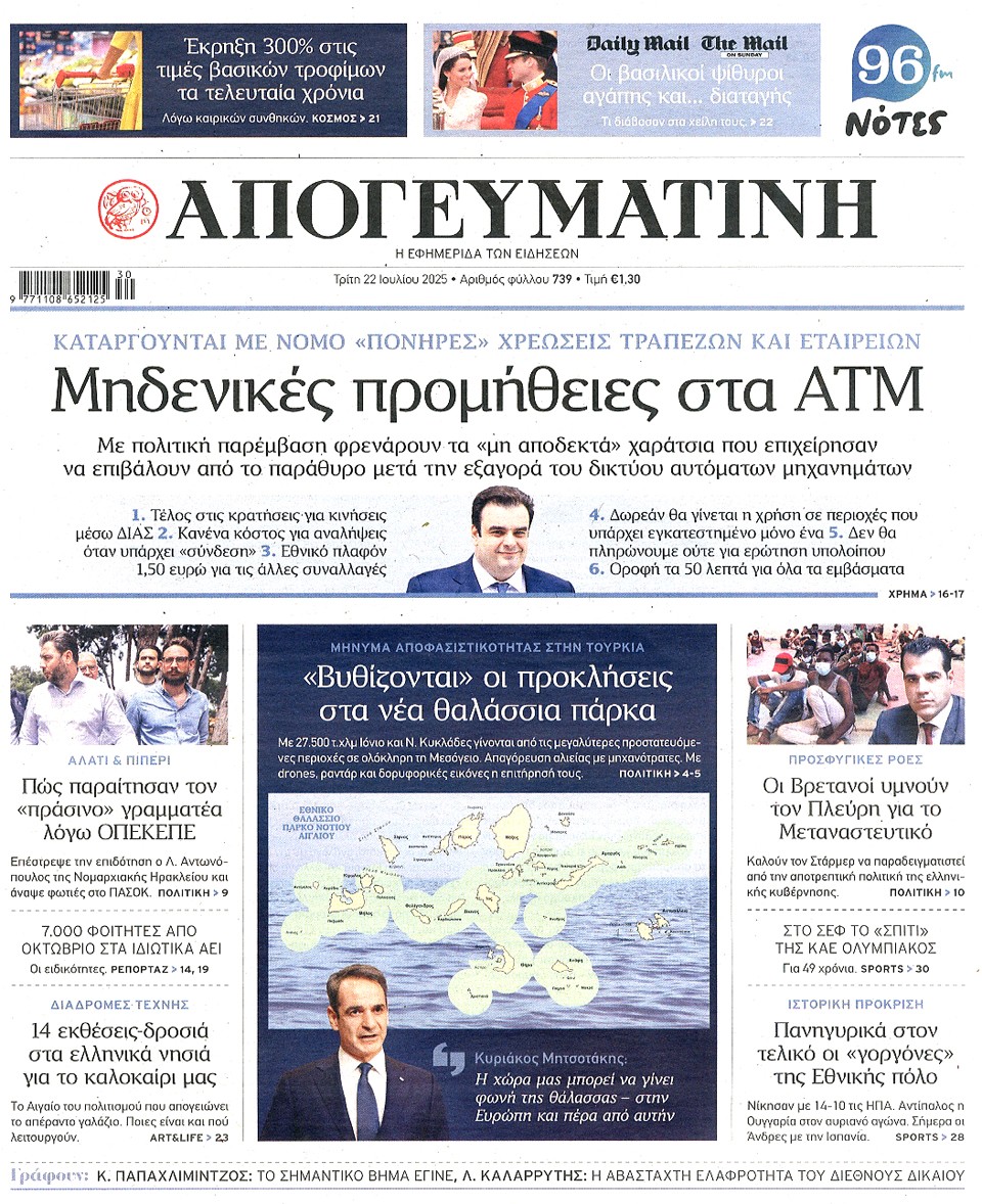 ΑΠΟΓΕΥΜΑΤΙΝΗ - 22 Ιουλίου 2025
