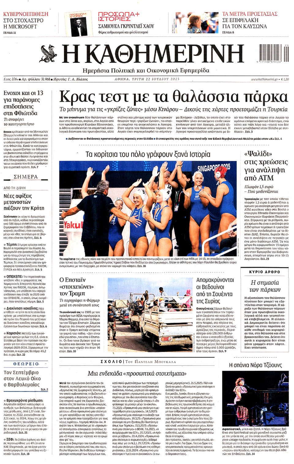 ΚΑΘΗΜΕΡΙΝΗ - 22 Ιουλίου 2025