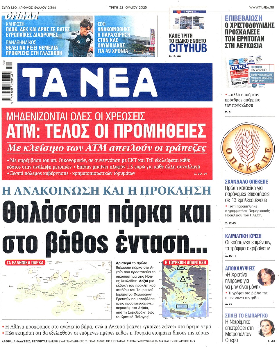 ΤΑ ΝΕΑ - 22 Ιουλίου 2025