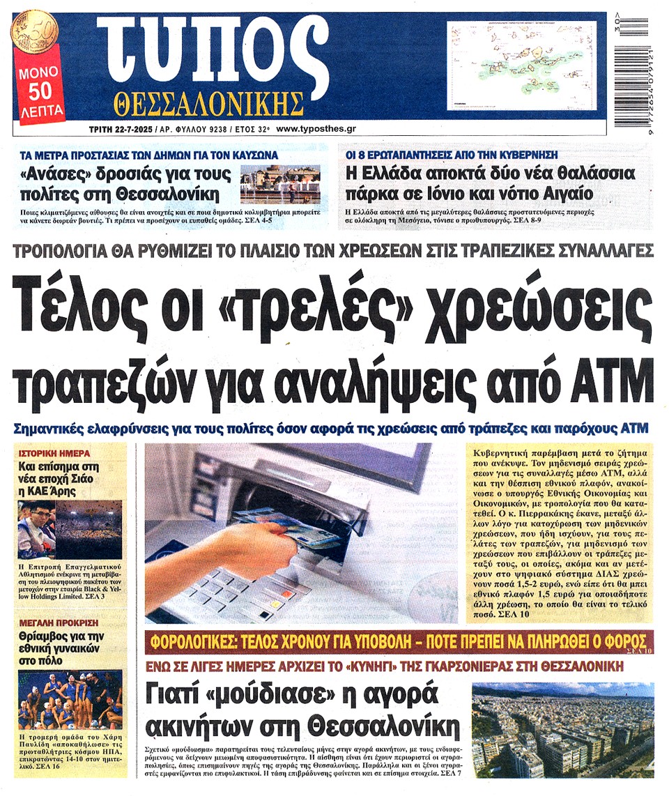 ΤΥΠΟΣ ΘΕΣΣΑΛΟΝΙΚΗΣ - 22 Ιουλίου 2025
