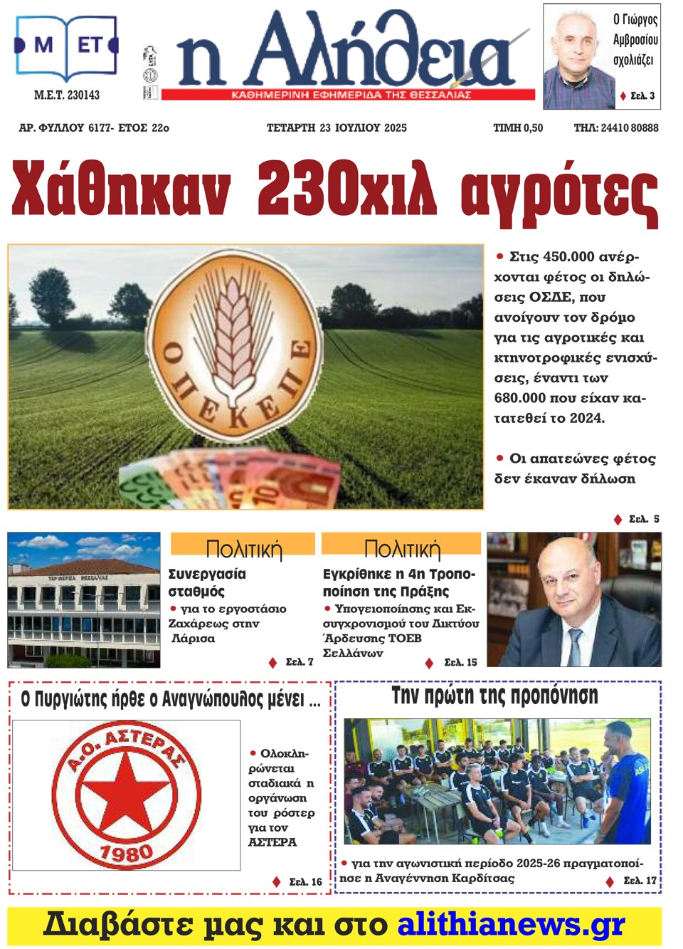 Η ΑΛΗΘΕΙΑ - 23 Ιουλίου 2025
