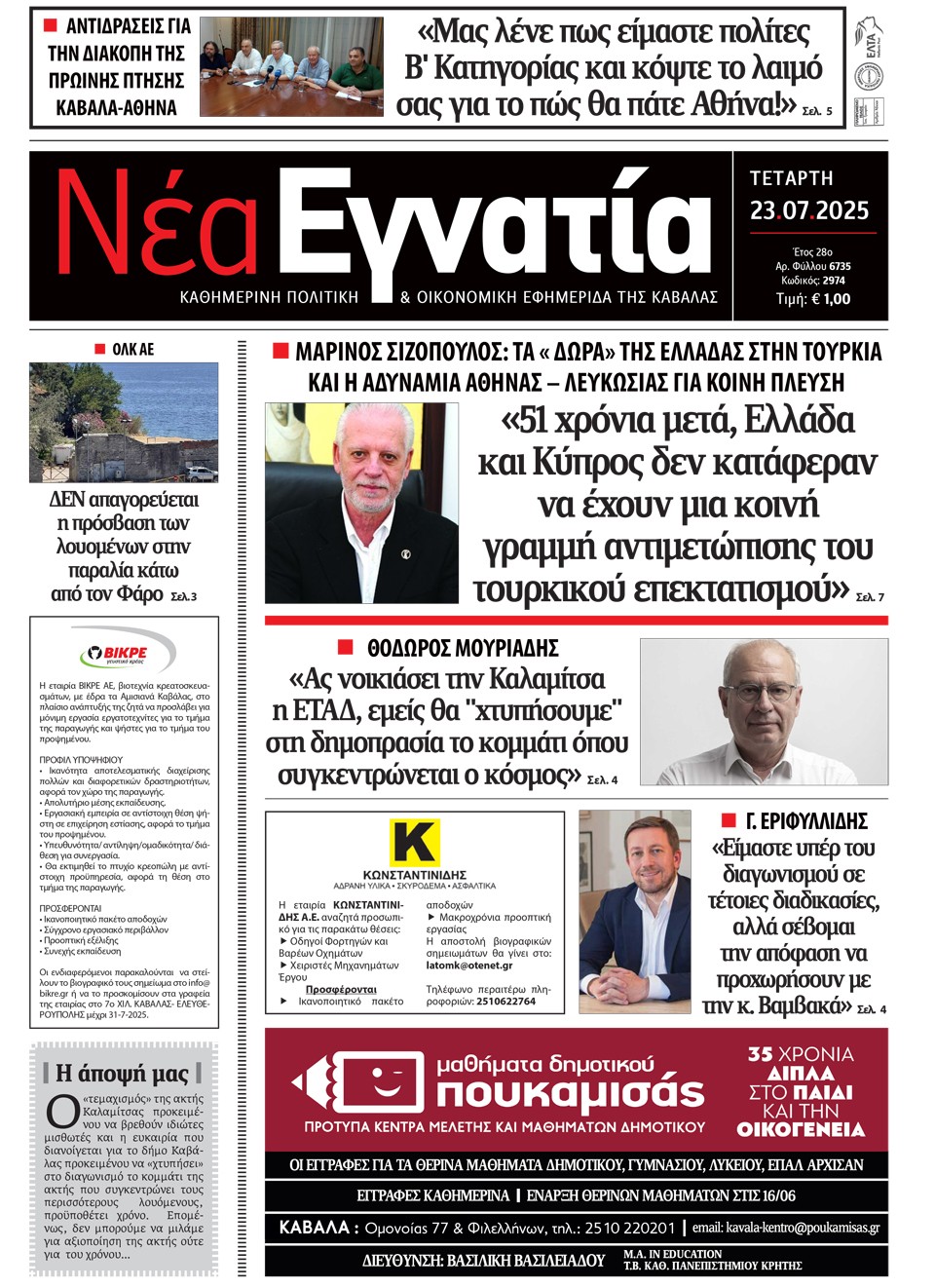 ΝΕΑ ΕΓΝΑΤΙΑ - 23 Ιουλίου 2025