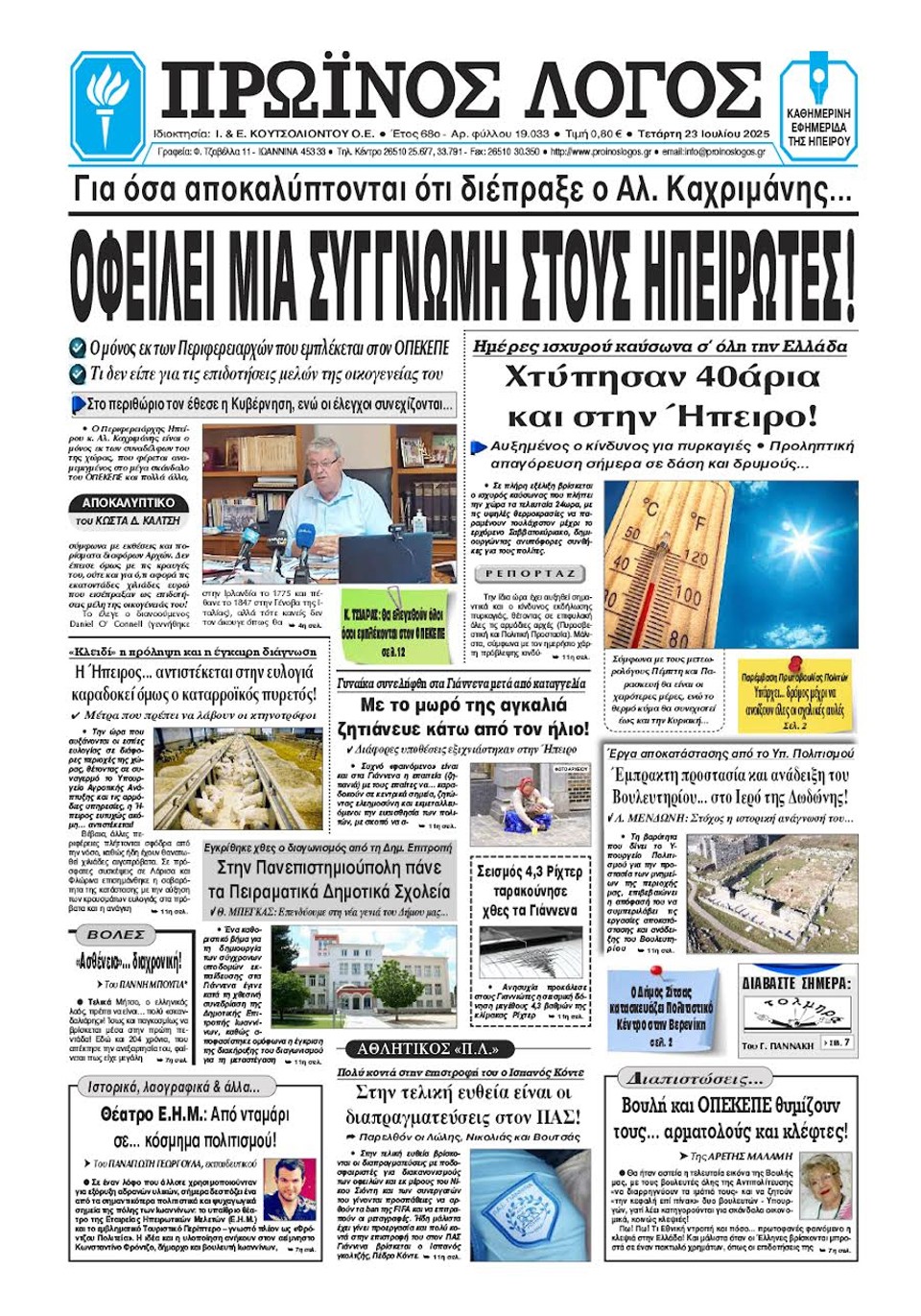 ΠΡΩΙΝΟΣ ΛΟΓΟΣ - 23 Ιουλίου 2025