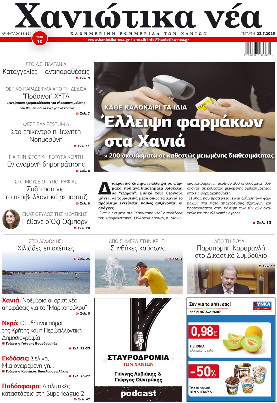ΧΑΝΙΩΤΙΚΑ ΝΕΑ - 23 Ιουλίου 2025