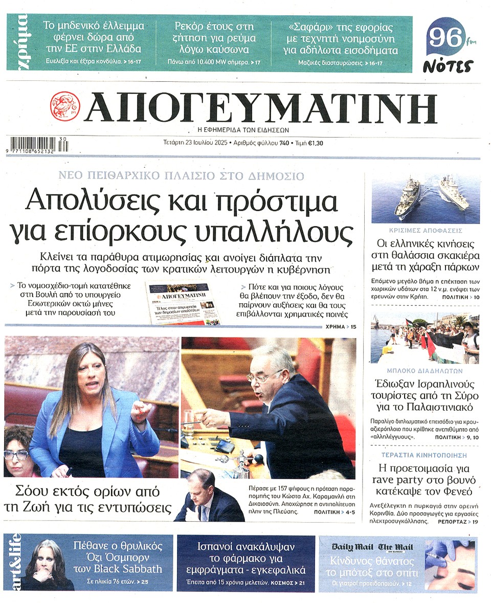 ΑΠΟΓΕΥΜΑΤΙΝΗ - 23 Ιουλίου 2025