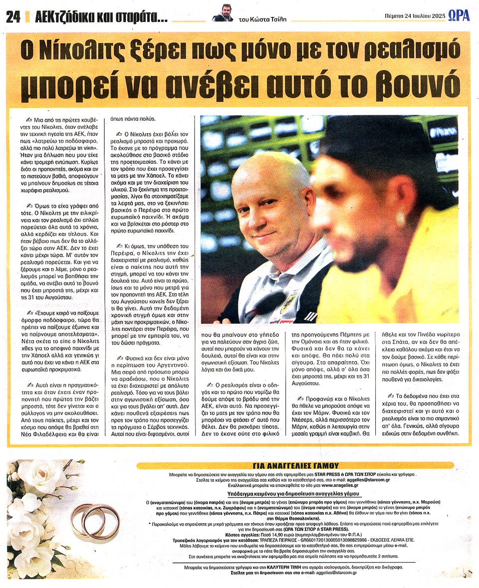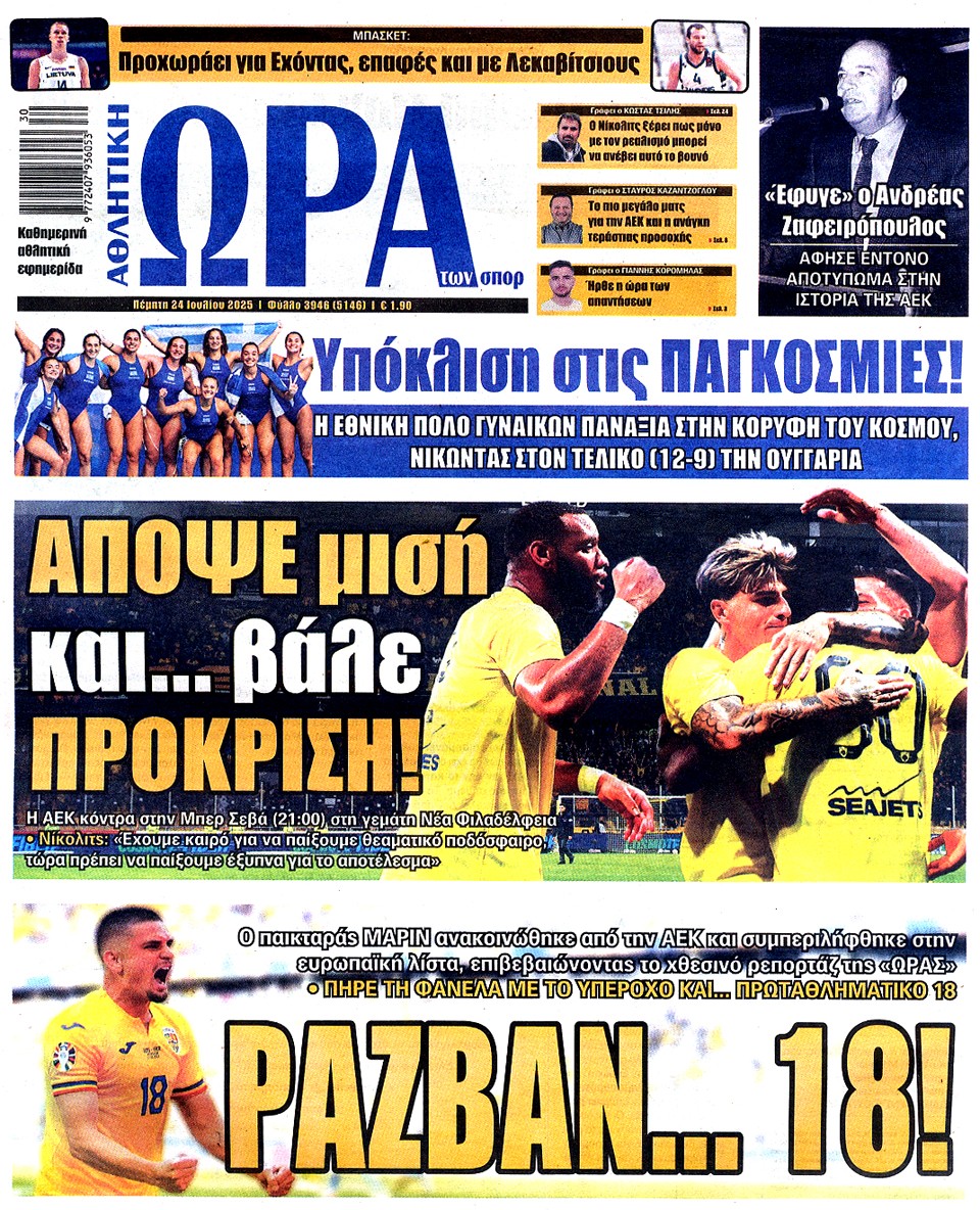 ΑΘΛΗΤΙΚΗ ΩΡΑ ΤΩΝ ΣΠΟΡ - 24 Ιουλίου 2025