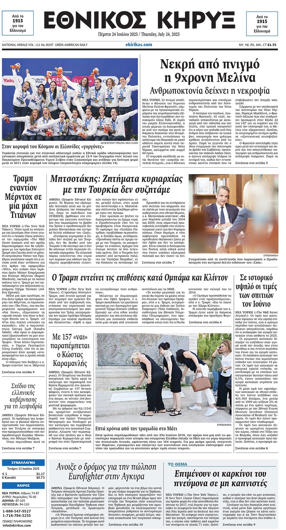 ΕΘΝΙΚΟΣ ΚΗΡΥΞ - 24 Ιουλίου 2025