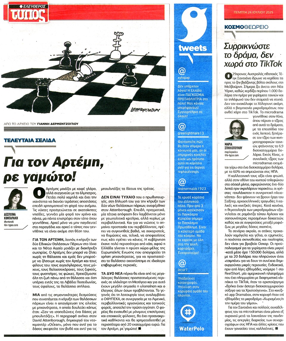 ΕΛΕΥΘΕΡΟΣ ΤΥΠΟΣ - 24 Ιουλίου 2025