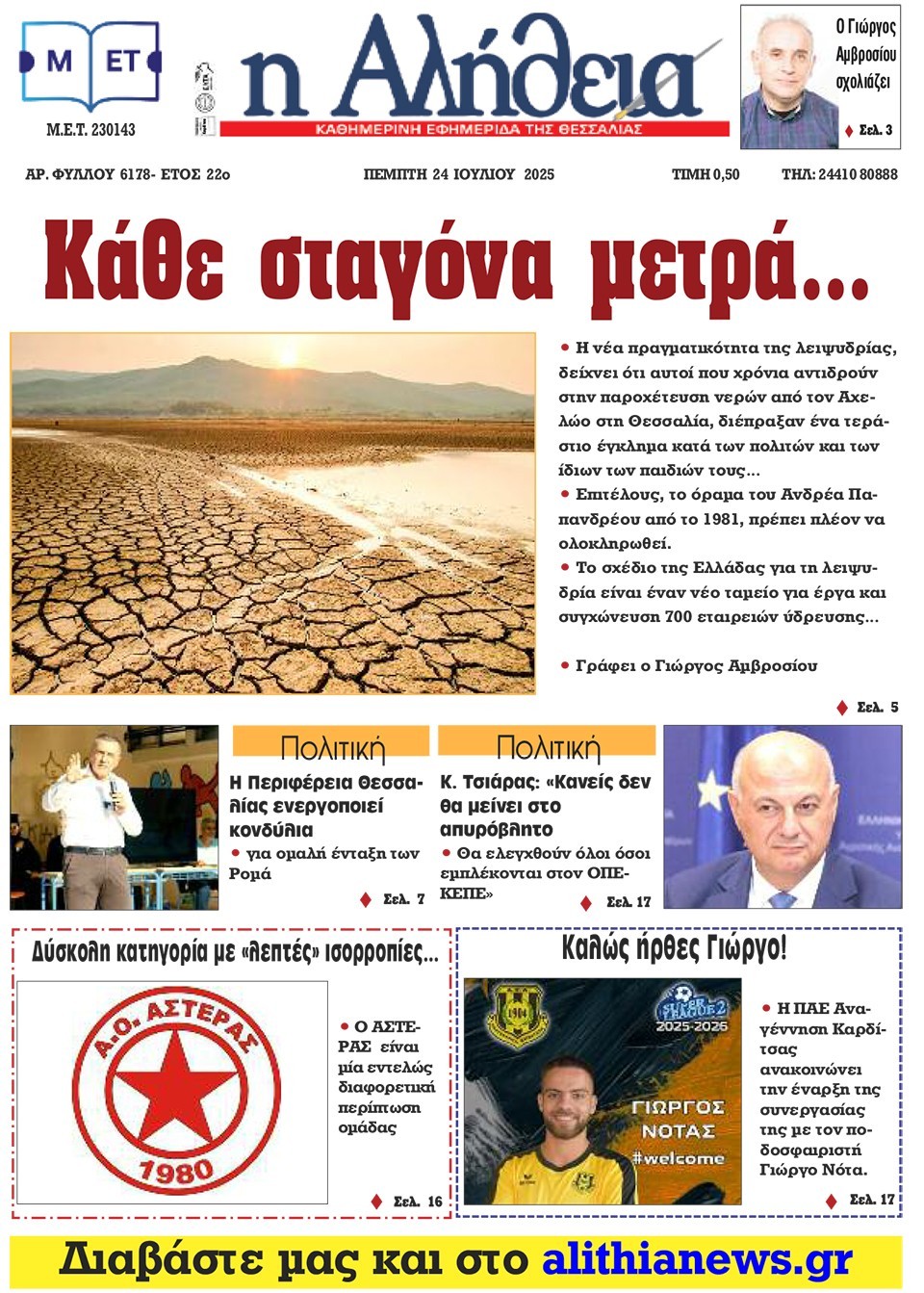 Η ΑΛΗΘΕΙΑ - 24 Ιουλίου 2025