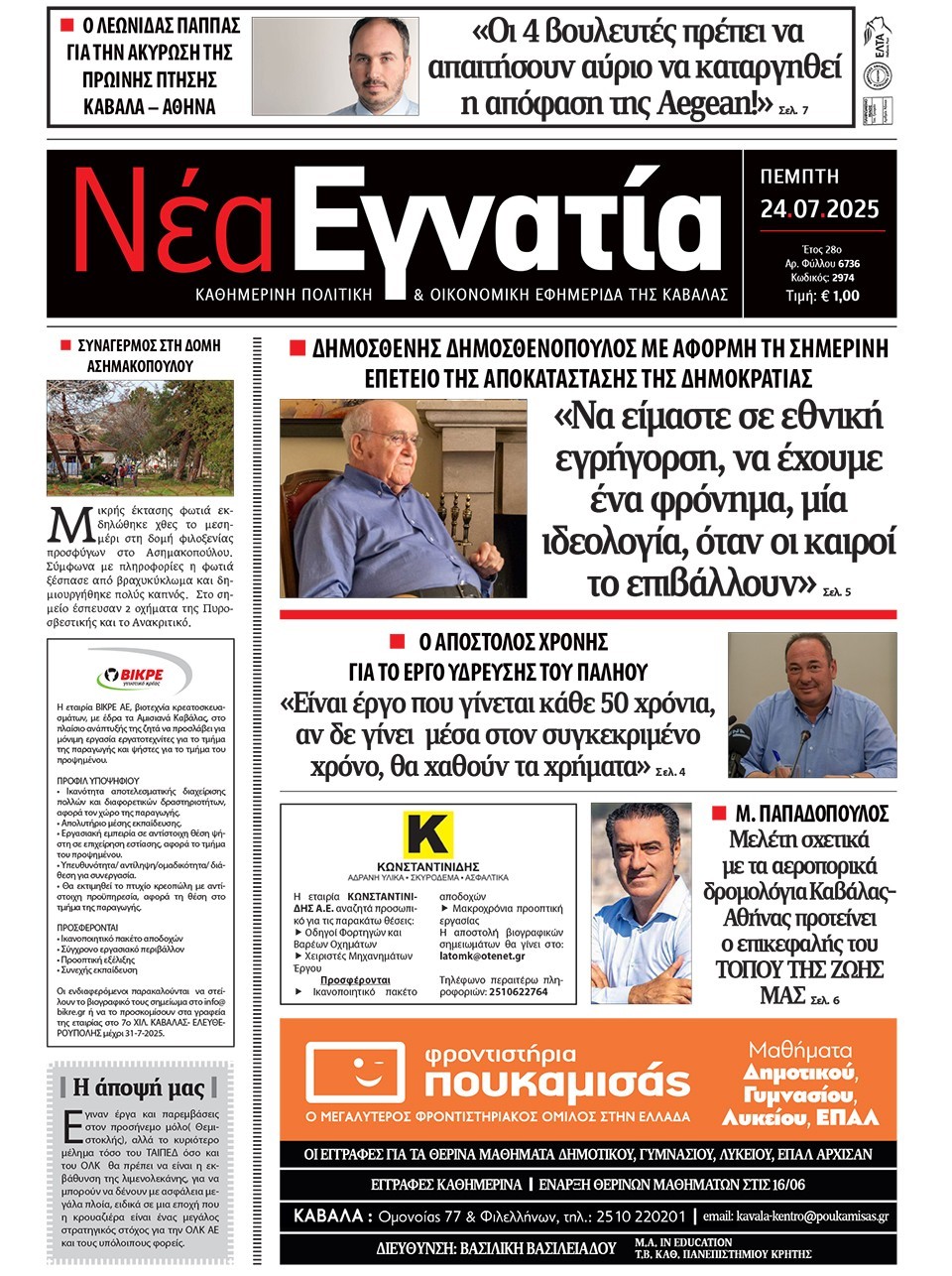 ΝΕΑ ΕΓΝΑΤΙΑ - 24 Ιουλίου 2025