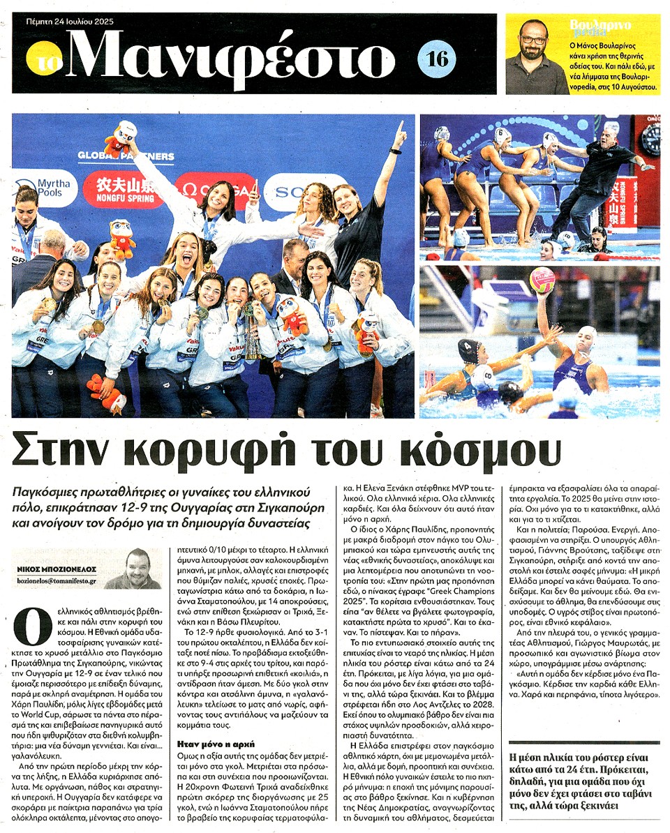 ΤΟ ΜΑΝΙΦΕΣΤΟ - 24 Ιουλίου 2025