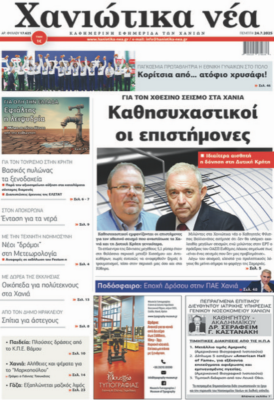 ΧΑΝΙΩΤΙΚΑ ΝΕΑ - 24 Ιουλίου 2025