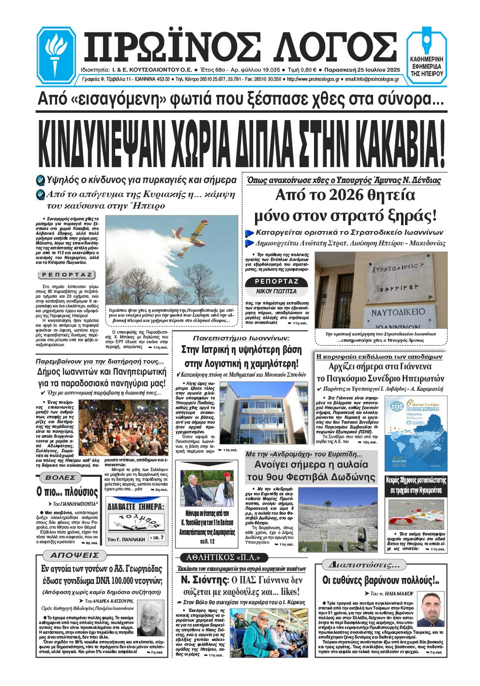 ΠΡΩΙΝΟΣ ΛΟΓΟΣ - 25 Ιουλίου 2025