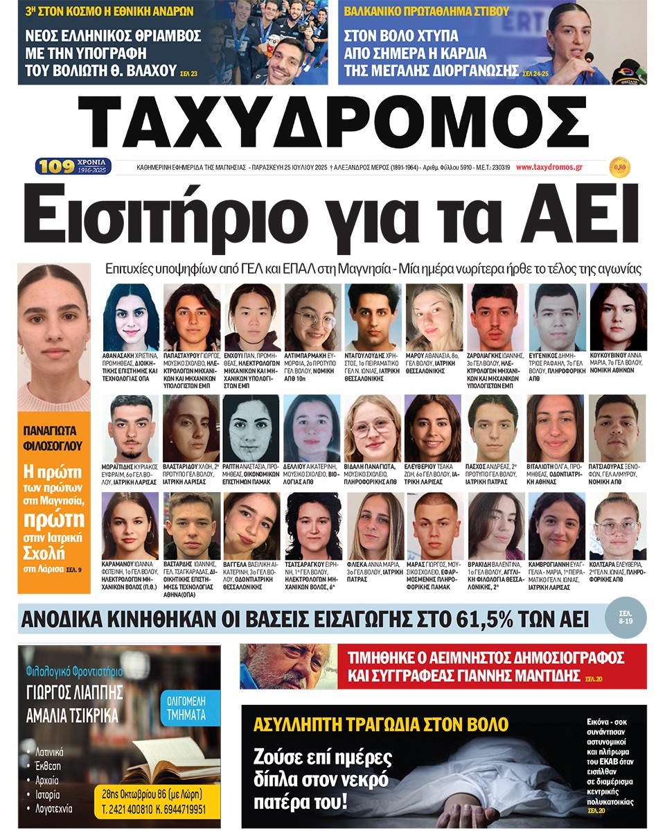 ΤΑΧΥΔΡΟΜΟΣ - 25 Ιουλίου 2025