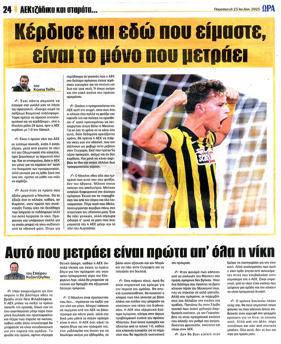 ΑΘΛΗΤΙΚΗ ΩΡΑ ΤΩΝ ΣΠΟΡ - 25 Ιουλίου 2025