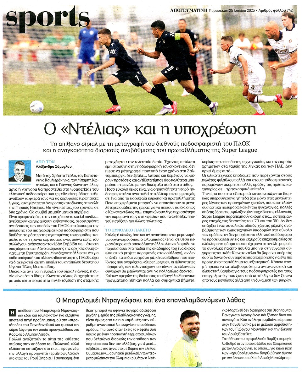 ΑΠΟΓΕΥΜΑΤΙΝΗ - 25 Ιουλίου 2025