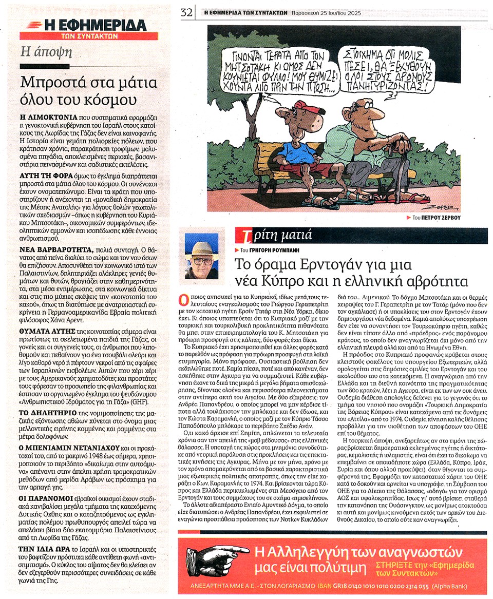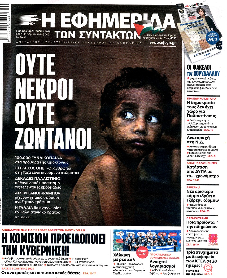 Η ΕΦΗΜΕΡΙΔΑ ΤΩΝ ΣΥΝΤΑΚΤΩΝ - 25 Ιουλίου 2025