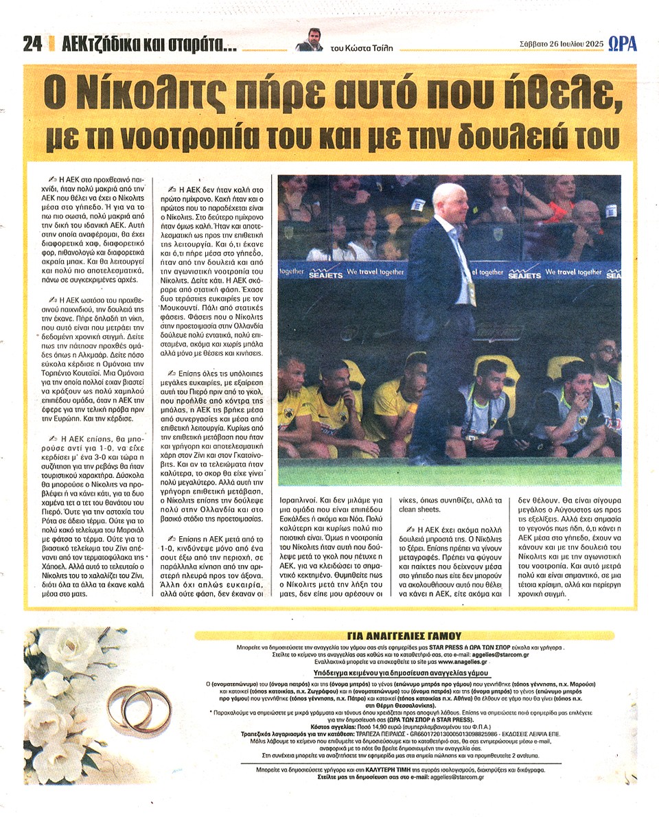 ΑΘΛΗΤΙΚΗ ΩΡΑ ΤΩΝ ΣΠΟΡ - 26 Ιουλίου 2025