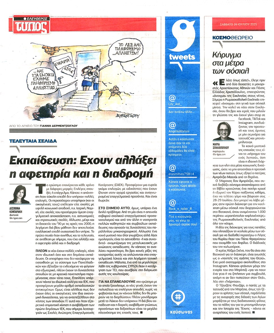 ΕΛΕΥΘΕΡΟΣ ΤΥΠΟΣ - 26 Ιουλίου 2025