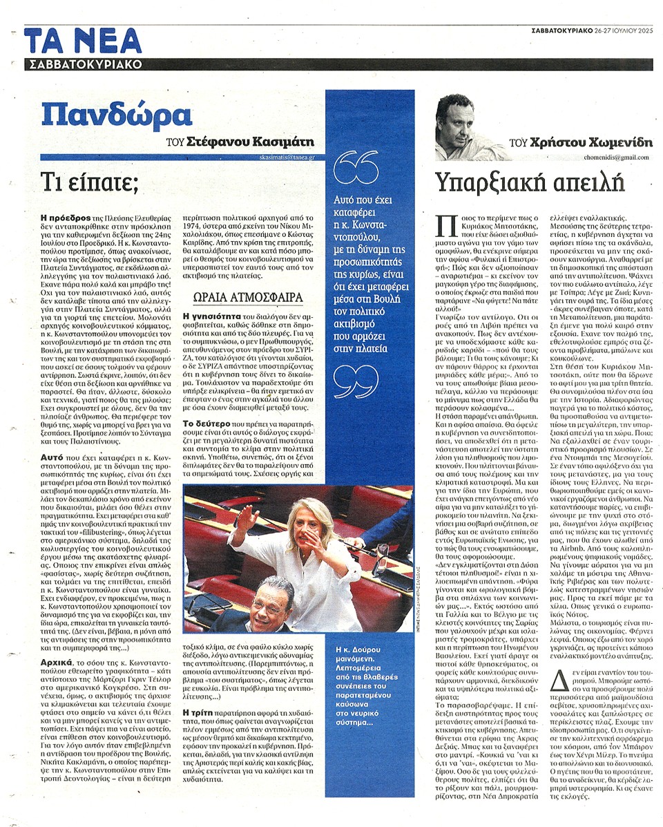 ΤΑ ΝΕΑ - 26 Ιουλίου 2025