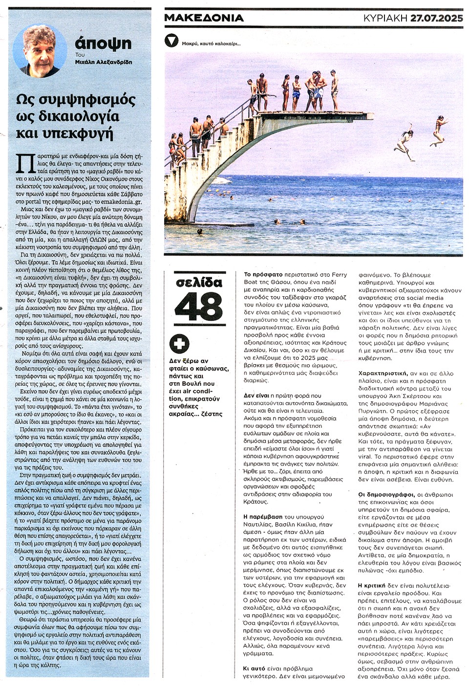 ΜΑΚΕΔΟΝΙΑ ΤΗΣ ΚΥΡΙΑΚΗΣ - 27 Ιουλίου 2025