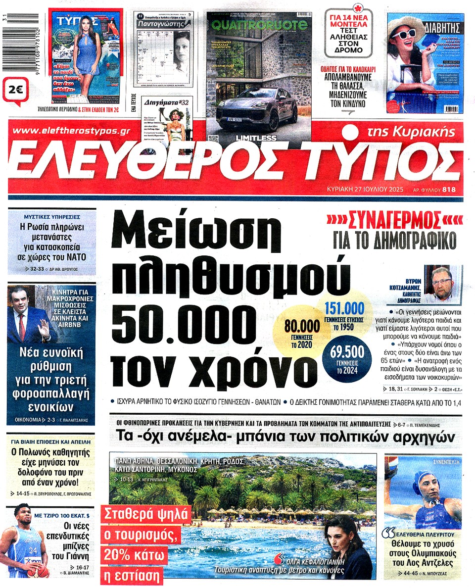 ΤΥΠΟΣ ΤΗΣ ΚΥΡΙΑΚΗΣ - 27 Ιουλίου 2025