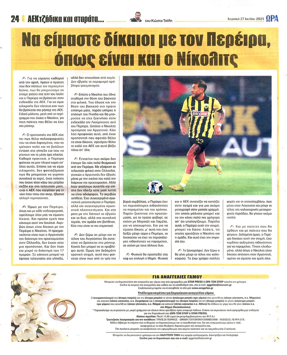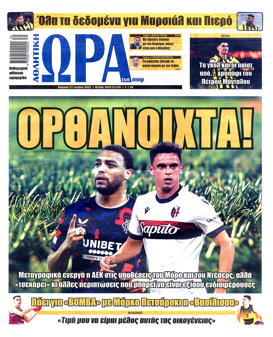 ΑΘΛΗΤΙΚΗ ΩΡΑ ΤΩΝ ΣΠΟΡ - 27 Ιουλίου 2025