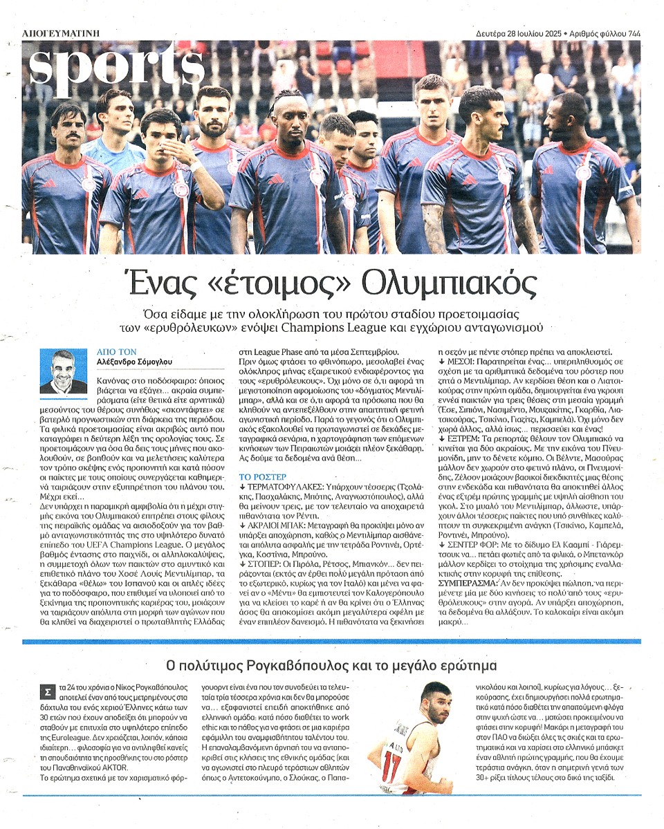 ΑΠΟΓΕΥΜΑΤΙΝΗ - 28 Ιουλίου 2025