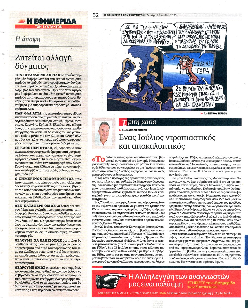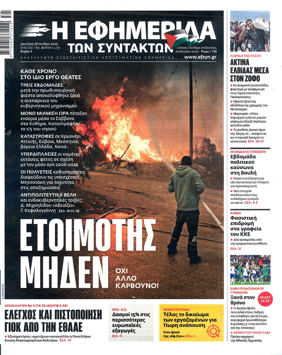 Η ΕΦΗΜΕΡΙΔΑ ΤΩΝ ΣΥΝΤΑΚΤΩΝ - 28 Ιουλίου 2025