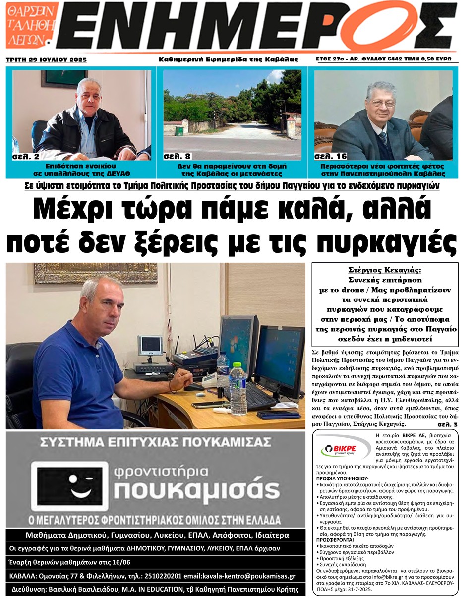 ΕΝΗΜΕΡΟΣ - 29 Ιουλίου 2025