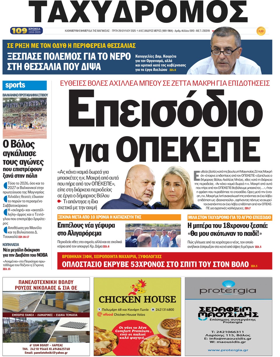 ΤΑΧΥΔΡΟΜΟΣ - 29 Ιουλίου 2025