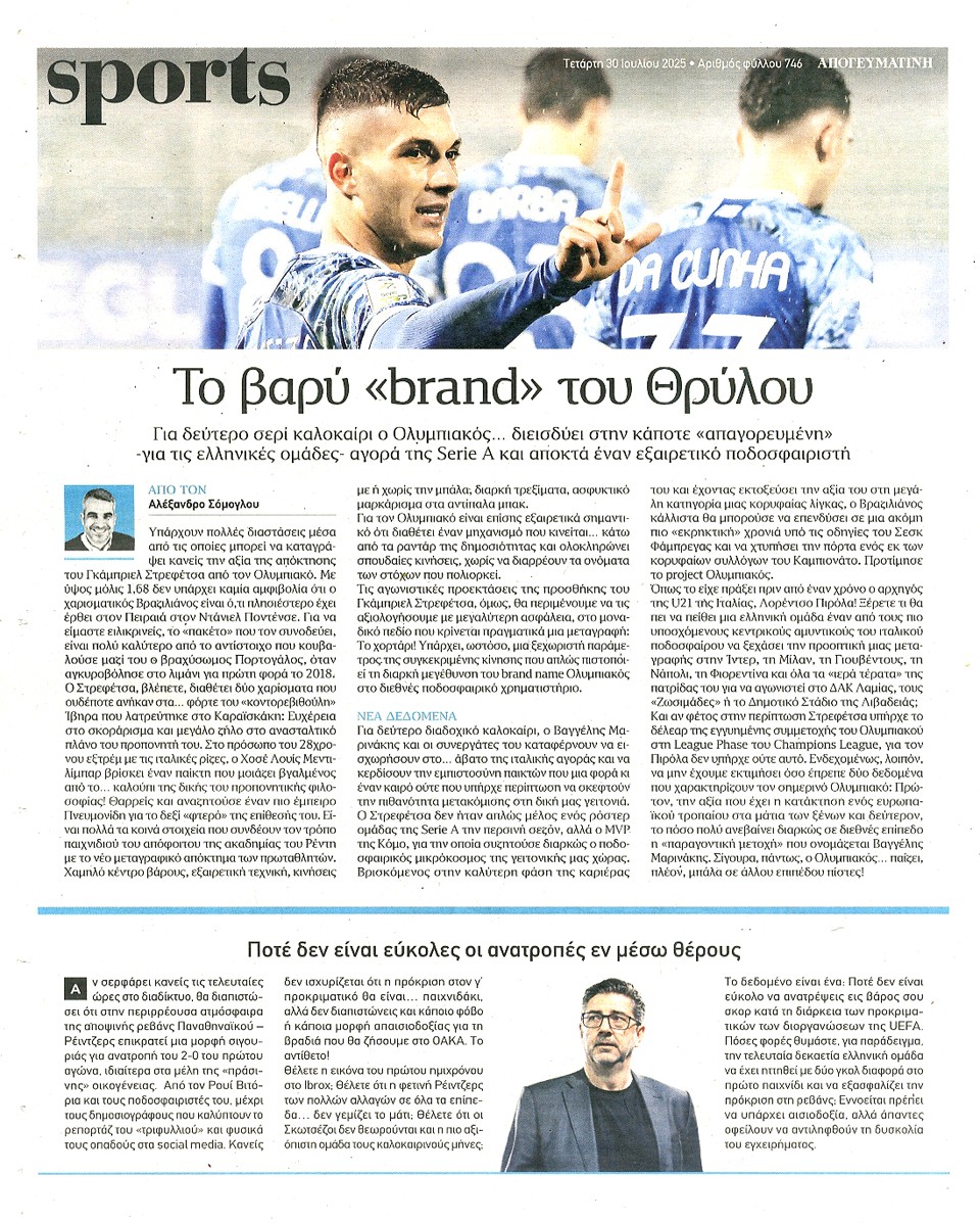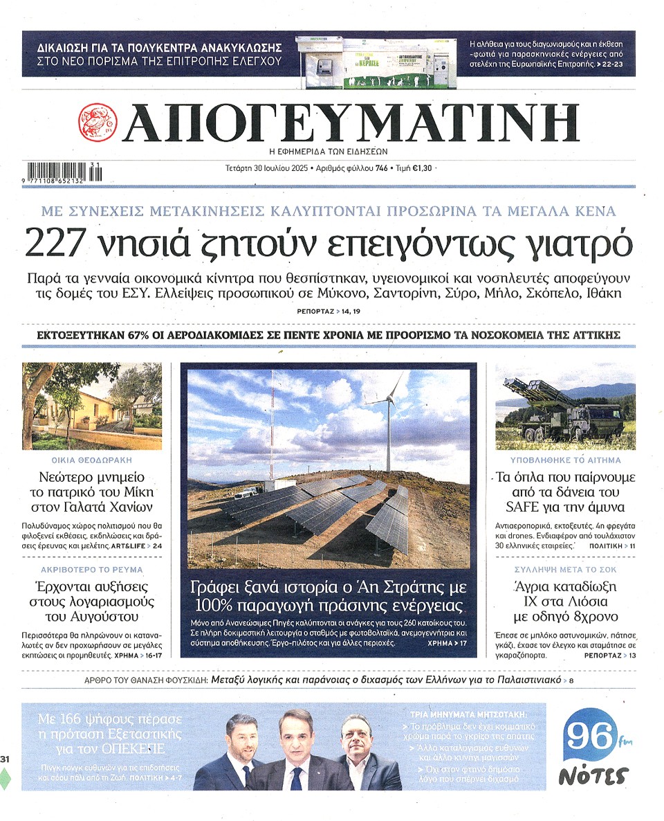 ΑΠΟΓΕΥΜΑΤΙΝΗ - 30 Ιουλίου 2025