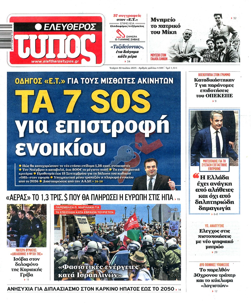 ΕΛΕΥΘΕΡΟΣ ΤΥΠΟΣ - 30 Ιουλίου 2025